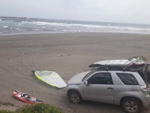 Excelente sesión 😁. Muy bien como siempre windguru en su pronóstico bien nuboso y gris pero con buen viento entre las 2 y 5pm. Yo con mi Flightsails 5.2 y tabla de 83lts perfecto… al principio con olas de 1 a 2 mts rico para saltar… tratamos varios backloops… alguno casi casi… mas tarde bajó la marea y desaparecieron las olas.